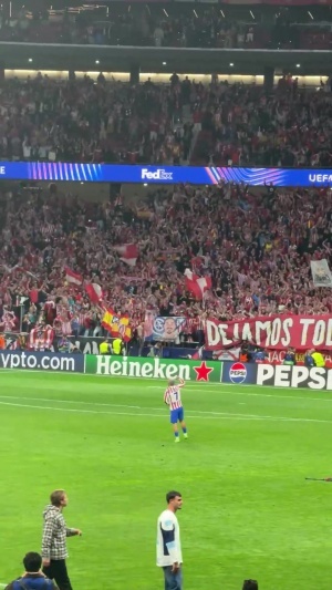能否圆欧冠梦!格子独自一人与马竞球迷激情庆祝进4强