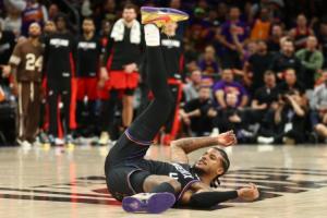 体育资讯4月15日讯 NBA附加赛,太阳半场62-65落后开拓者。