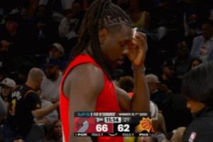 不下火线!朱·霍勒迪眉骨出血 队医场边紧急处理一下