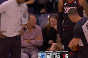 离谱!班凯罗传球失误 直接击中场边女球迷头部
