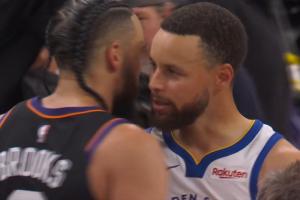 风度!库里与狄龙、杰伦·格林拥抱致意 科尔还跟狄龙聊上了
