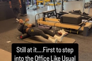 工位自嗨!詹姆斯一边用泡沫轴放松腰背一边激情说唱