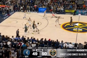 翻过来了!约基奇空位三分球命中 掘金反超森林狼