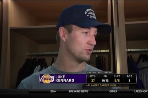 体育资讯4月19日讯 在今天结束的一场季后赛中,湖人以107-98战胜火箭。赛后,湖人球员卢克·肯纳德接受了媒体的采访。以下是完整版采访内容。