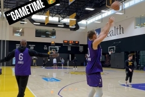 手感依旧火热!肯纳德三分十连中赢得投篮比赛 詹姆斯振臂庆祝