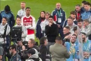 谢尔基领完奖牌后,在失落的阿森纳球员前面自拍