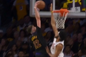 给东契奇看傻了!拉拉维亚快下起飞 单臂暴力隔扣贾勒特·阿伦!