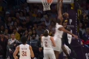 百分连线!东契奇反击速推隐蔽妙传 詹姆斯跟进双手滑翔轻扣