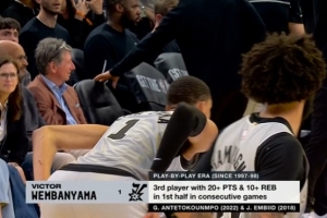 恩比德和字母后第三人!文班亚马连续2场上半场20+10