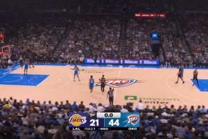 湖人首节罚球10-3雷霆 但落后雷霆23分之多