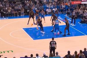 杰伦威造犯规打成2+1 第二节开始雷霆已领先湖人30分