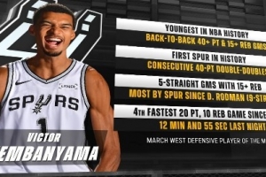 独角兽时代!文班背靠背40分15板历史最年轻 连续40+两双队史首人