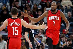 体育资讯4月4日讯 NBA常规赛,火箭140-106大胜爵士,赛后杜兰特接受采访。