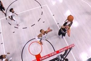 从容不迫!约基奇转身关键抛射 球刚越过文班手指尖掉入篮筐!