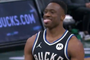 吐舌头缓解一下尴尬~字母哥哥认真罚球 结果又短又歪罚出三不沾