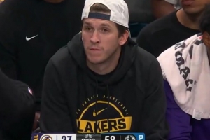 大比分落后!里夫斯在场边观战 两眼无神&面无表情和队友击掌