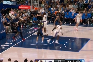 灵犀一点!詹姆斯化身二传手 吸引防守顺势点给艾顿助其暴扣