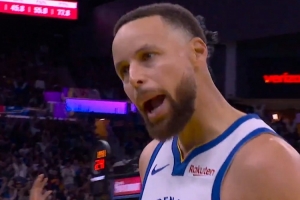 久违了!库里单挑伊森后撤步三分飙中 大喊:I'm back!