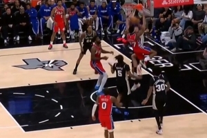 年轻人好腰啊!埃奇库姆冲筐折叠对抗拉杆上篮得分