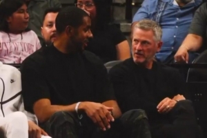 阿德和开拓者新老板邓顿一起观战与马刺的比赛 两人聊得挺投机