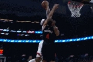 势大力沉!阿德巴约内线接球 垂直上升暴力隔扣巴恩斯